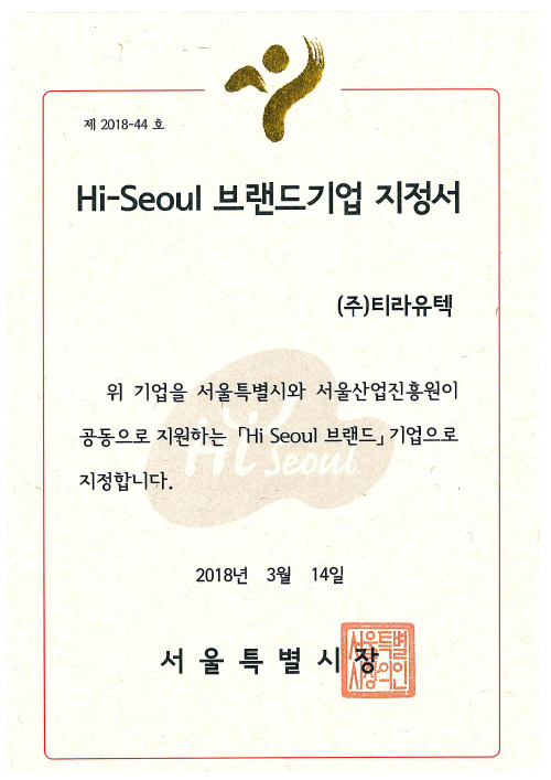 Certificate of the Excellent Workplace Seoul type Small Hidden Champion