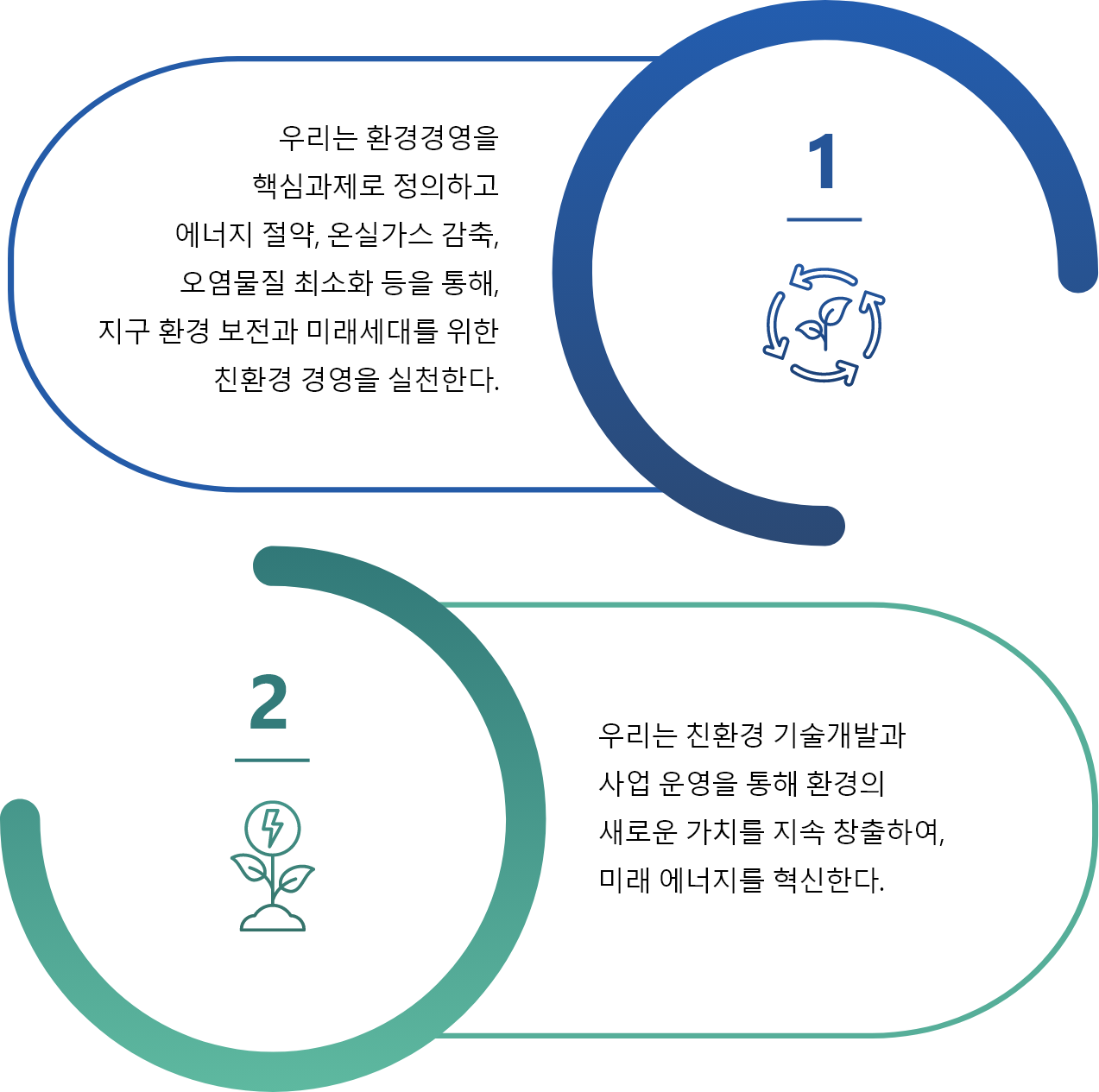 - 우리는 의사결정 과정에서 환경을 최우선으로 생각하며 환경경영 시스템이 체계적으로 관리되도록 최선을 다하고 환경 정보를 대중에 공개하여 투명한 환경경영을 실천한다.